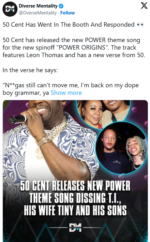 Also, 50 Cent’s just dropped a brand new song featuring Leon Thomas where he says a couple of lines responding to T.I.’s son’s personal jabs.