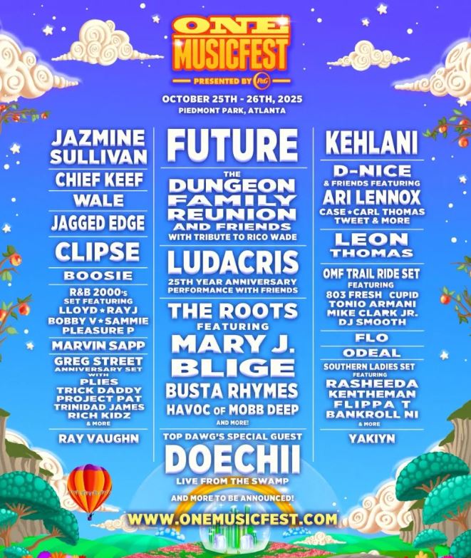 “Atlanta is our home, and this year we’re celebrating it in the biggest way possible—with Future, Ludacris, and a historic Dungeon Family Reunion honoring the life and legacy of Rico Wade, a true giant in hip-hop,” Carter shared in a statement. “ONE Musicfest has always been about uniting legends, elevating new voices, and creating unforgettable cultural moments.”