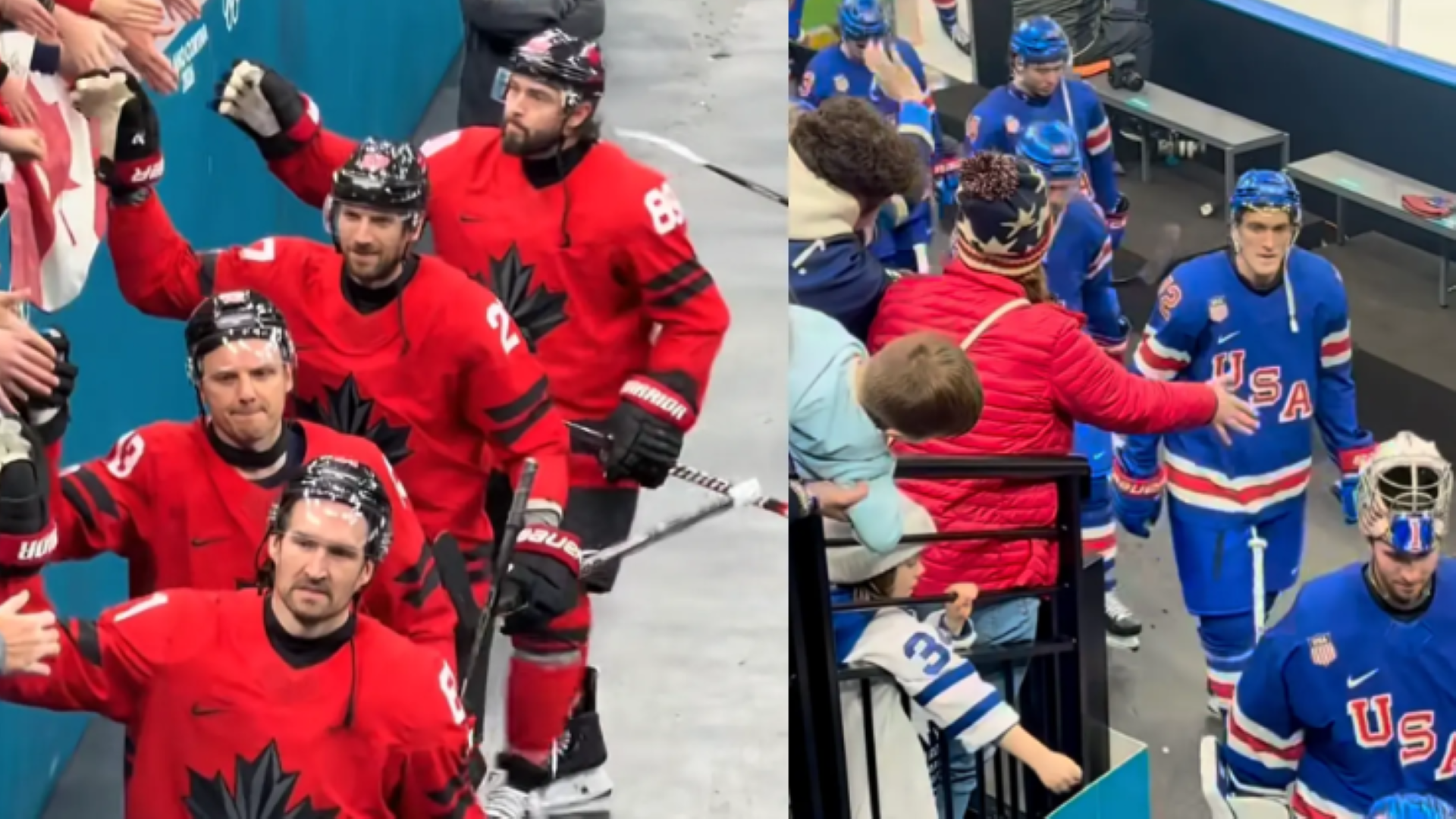But if there’s one thing Canadians never drop, it’s class. A TikTok is making the rounds showing our men’s team high‑fiving fans in the stands while Team USA walks right past them.