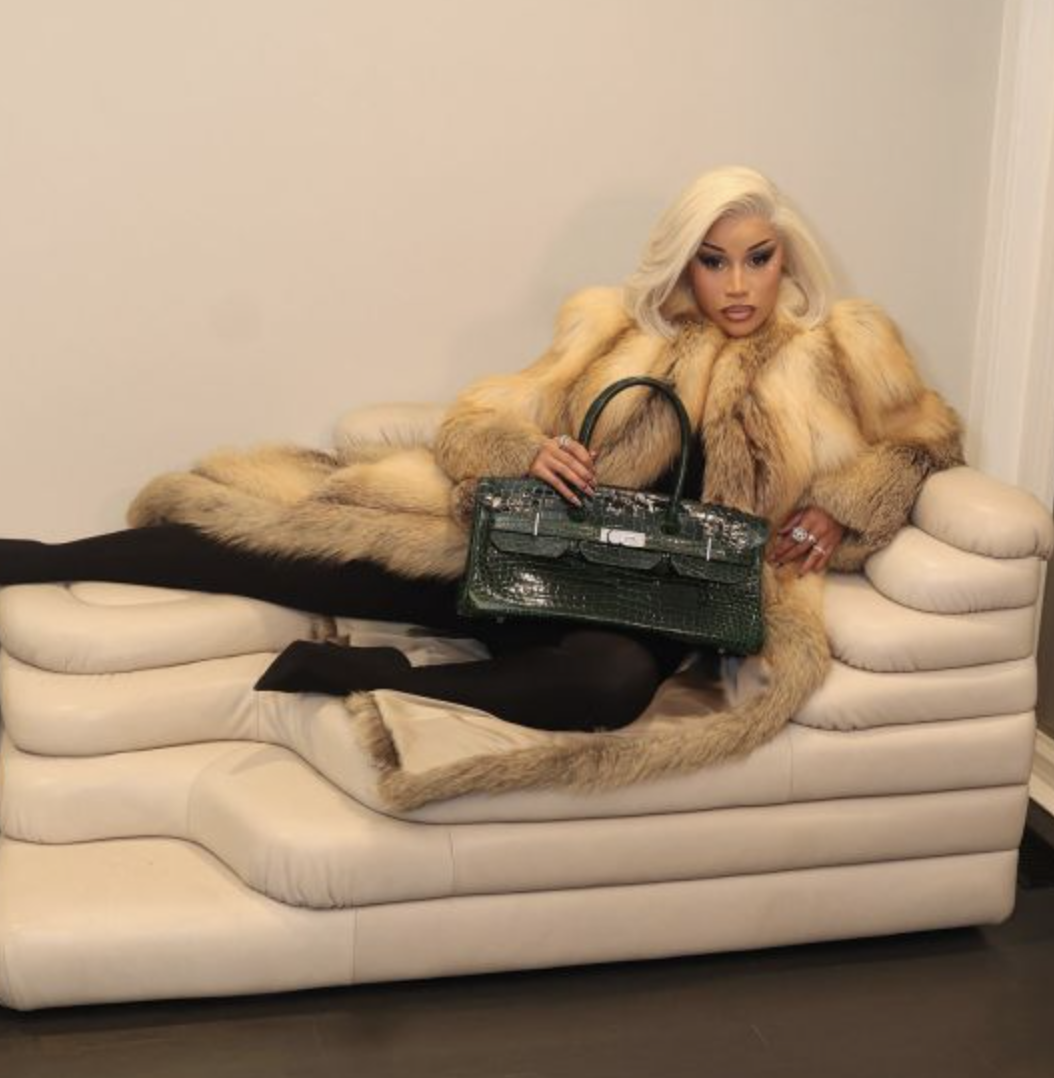 Many view Cardi B’s fashion choices, like this handbag, as emblematic of her power and influence in the realm of contemporary celebrity style, reinforcing her unique position in the luxury market.