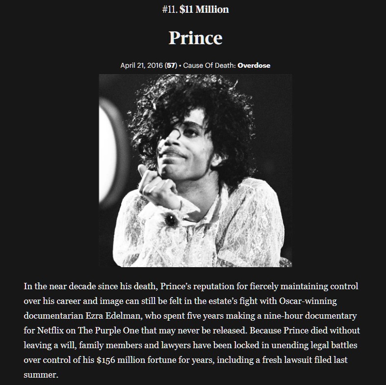Forbes has released its list of the top paid dead celebrities for 2025.
