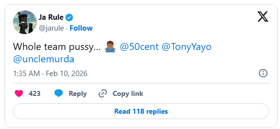 — Ja Rule (@jarule) February 10, 2026