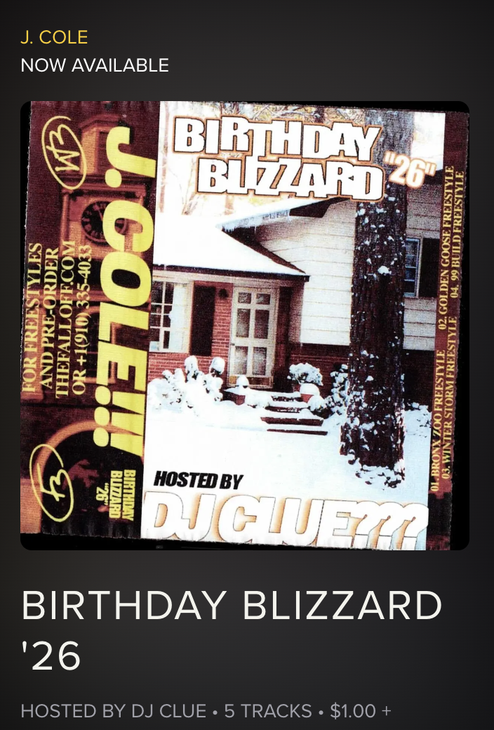 As the release for “The Fallout” gets closer (Feb 6, 2026)…Cole gives us 5 songs/freestyles to get us warmed up from the cold.