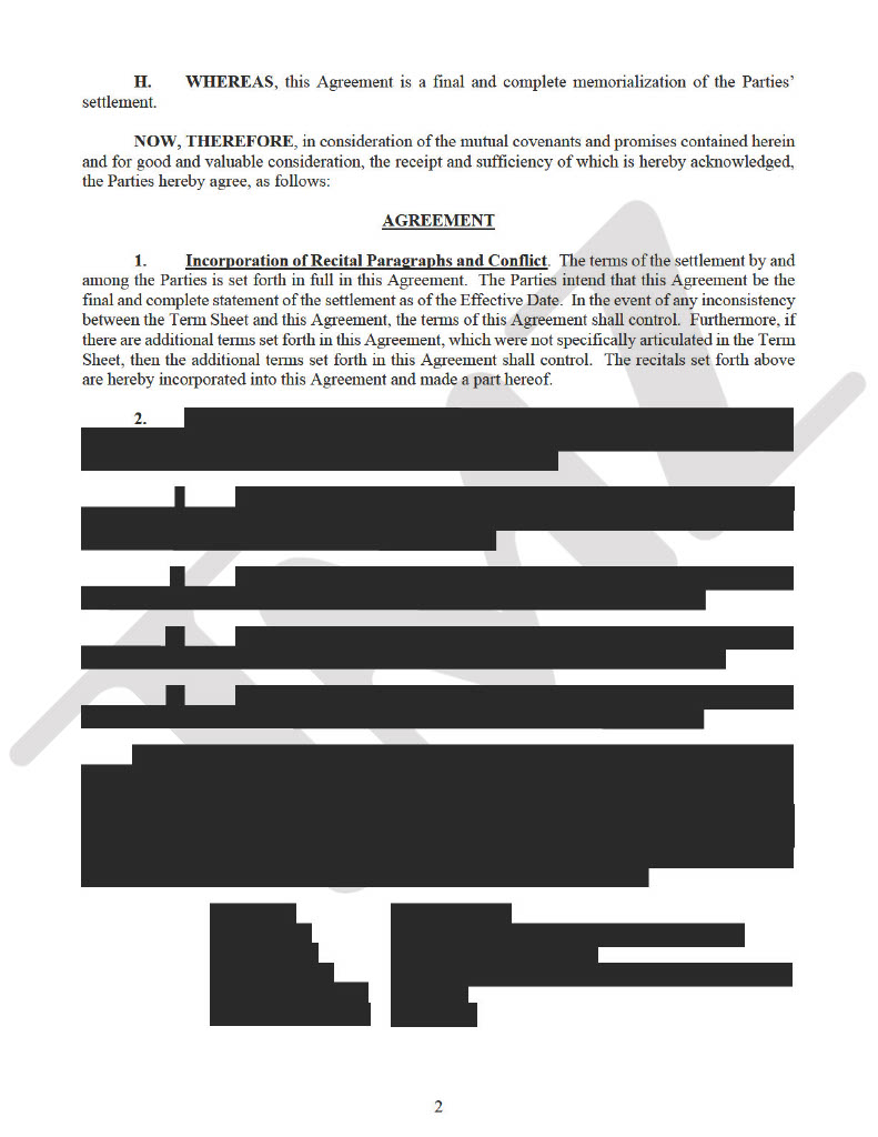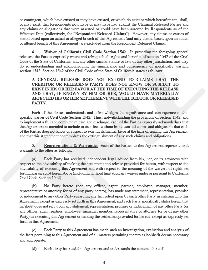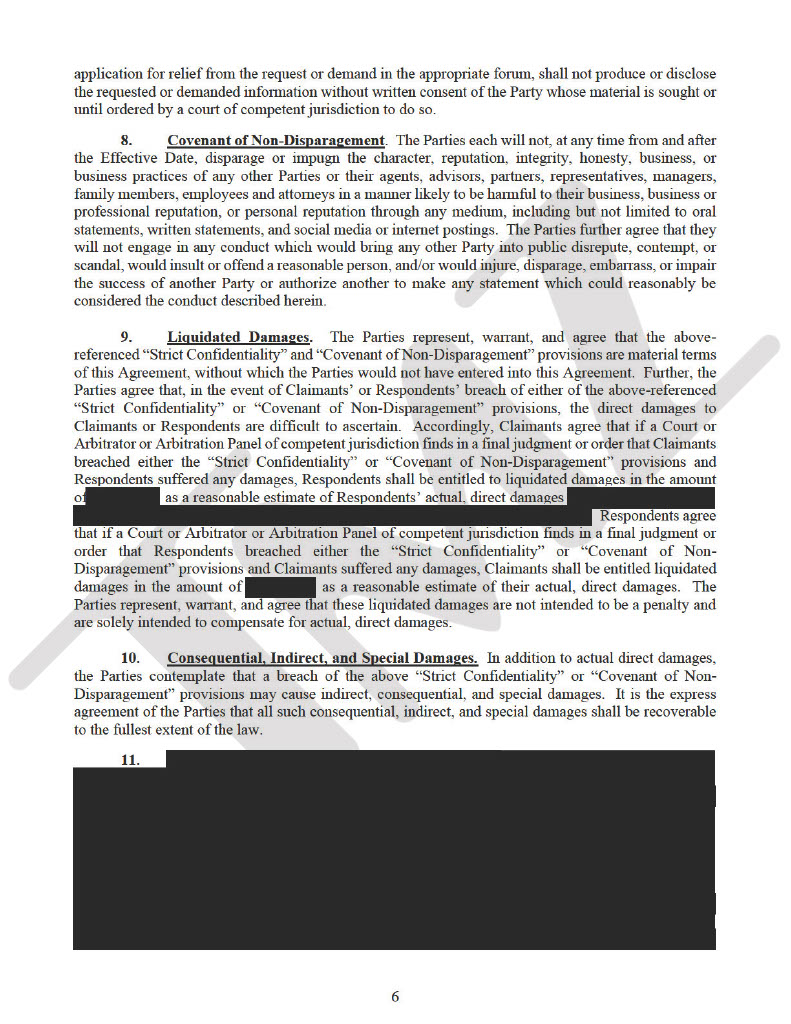 The settlement included a strict non-disparagement clause, preventing either party from making negative comments about the other’s reputation.