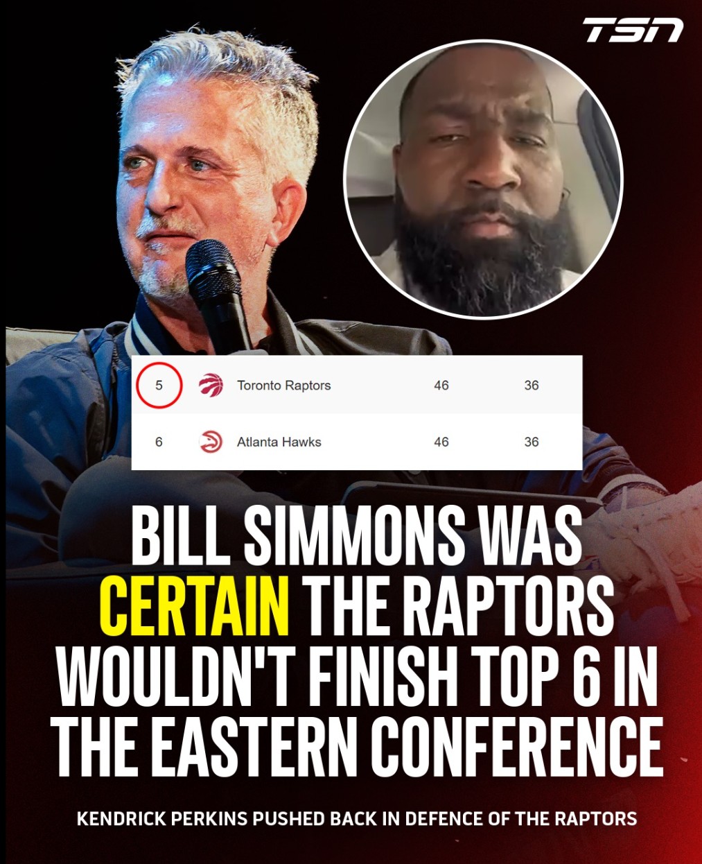 Bill Simmons lost his wager with Kendrick Perkins after the Toronto Raptors successfully finished as the 5th seed in the Eastern Conference for the 2025–26 season.