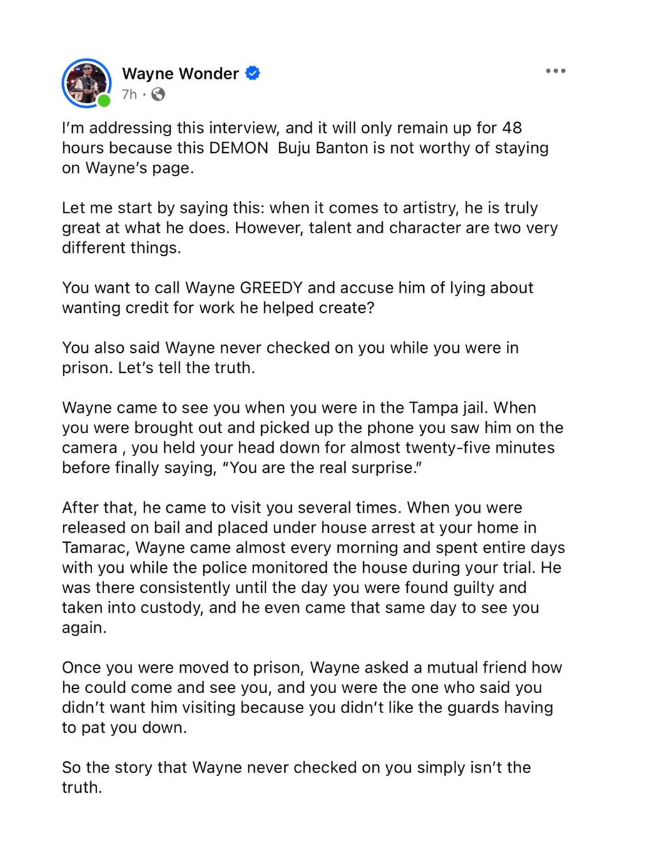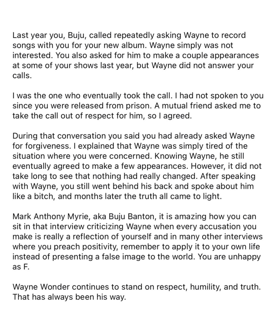 An interview between Buju Banton and Queenzflip has sparked a scathing response from Wayne Wonder’s wife about their situation