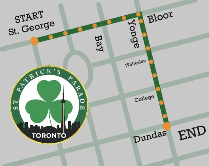 Road Closures: The parade’s staging area, located near the starting point at St. George St. and Bloor St. W., will be closed starting at 8 a.m. on Mar. 15. The rest of the streets along the route will close beginning at 12 p.m. Keep in mind that sections of the route will reopen as the parade passes through.